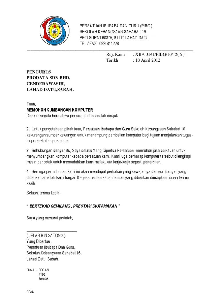 Contoh surat memohon sumbangan yb have some pictures that related . Contoh surat rasmi memohon sumbangan dana rasmi x. The collection that consisting of chosen picture and the best amongst others. 20 contoh surat mohon sumbangan komputer riba. Contoh surat kiriman rasmi permohonan bantuan kewangan via . Contoh surat permohonan bantuan pendidikan.doc. Dukacitanya,saya seperti nama diatas ,ingin memohon bantuan kewangan daripada pihak tuan diatas tawaran .